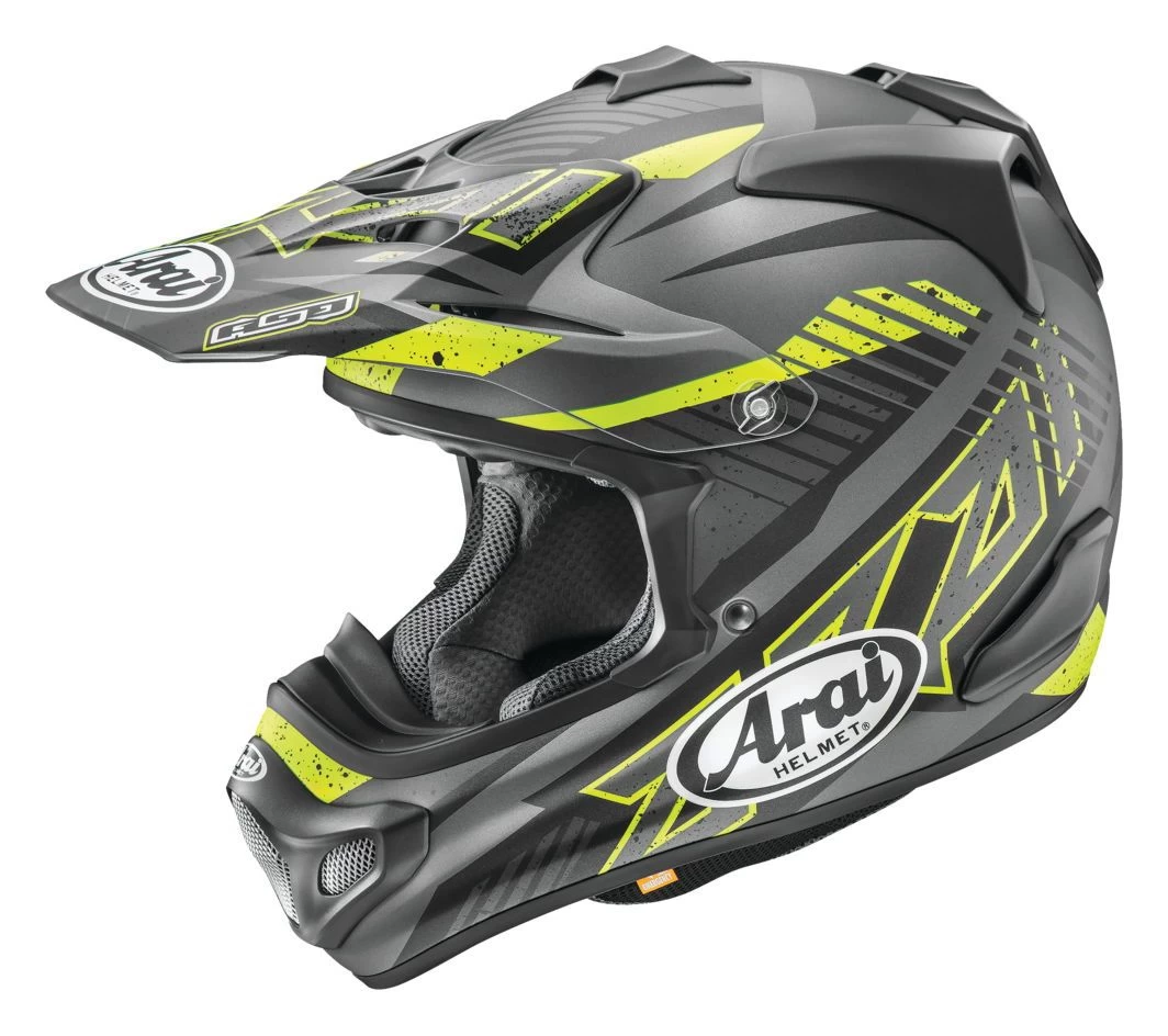 The iconic Arai VX Pro-3 receives its long-awaited replacement in the form of the Arai VX Pro 4 Helmet. The Arai VX Pro4 dirt helmet is for the serious off-road enthusiast, who requires nothing but the utmost in comfort and protection from their lid. The round shell shape is based on Arai’s R75 Shape Concept and is optimized for strength and the peak, mouth vent and top vents are all designed to break away upon impact leaving less surface mass to catch or bind.